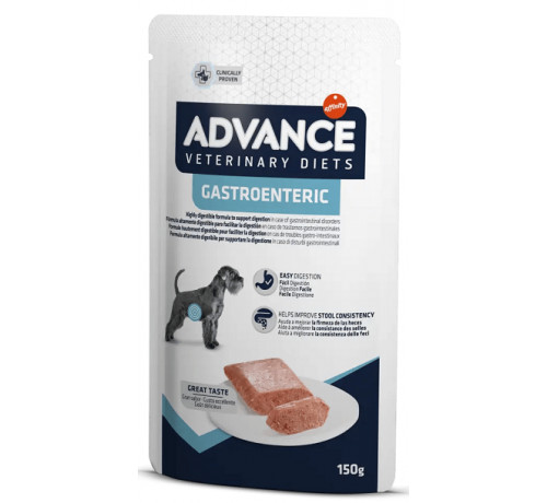 Advance Veterinary Diets Umido Gastroenteric è un alimento umido dietetico adatto ai cuccioli di età superiore a 14 settimane e cani adulti, appositamente formulato per supportare la salute gastrointestinale e aiuta a ridurre alcune alterazioni gastrointestinali e indicati in casi di insufficienza pancreatica esocrina. Confezione: 1 bustina da 150 grammi