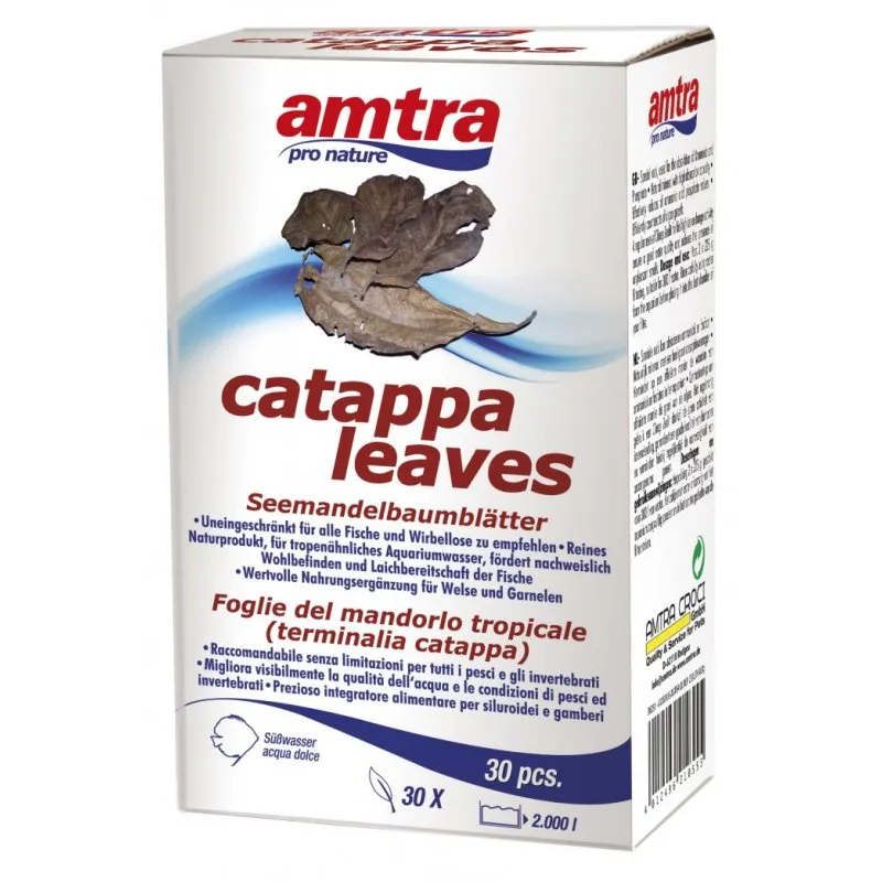 Amtra Catappa Leaves Foglie di Catappa è un elemento decorativo per l’acquario di acqua dolce. Amtra Catappa Leaves sono foglie esiccate di Catappa che oltre a decorare l’ambiente svolgono altre importanti funzioni.