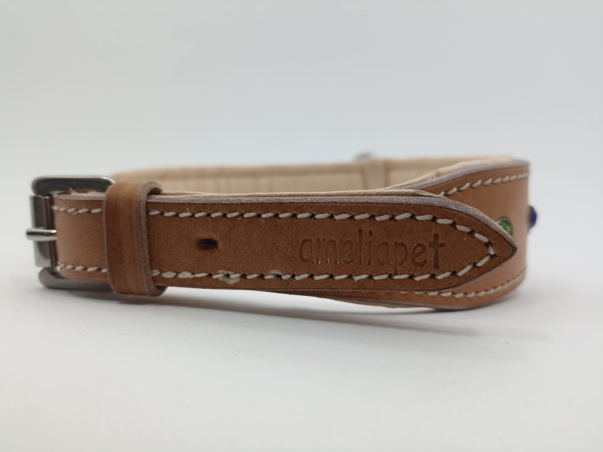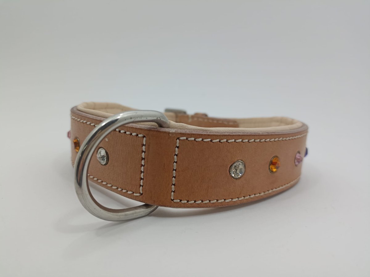 Valorizza il carattere e la bellezza del tuo cane con il Collare Brilliance Amelia Pet in Cuoio con Strass Colorati. Realizzato in cuoio di alta qualità, offre robustezza ed eleganza, garantendo nel tempo una patina vintage inconfondibile, simbolo delle avventure condivise. Gli strass colorati applicati manualmente illuminano ogni movimento con un luccichio distintivo, perfetti per le passeggiate di tutti i giorni o per occasioni speciali.