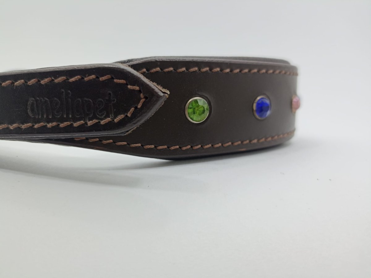 Collare Brilliance Amelia Pet in Cuoio con Strass Colorati