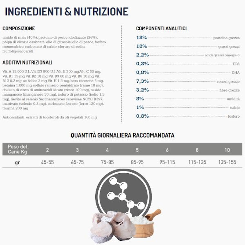 - acidi grassi Omega-3 per favorire una migliore condizione di cute e mantello