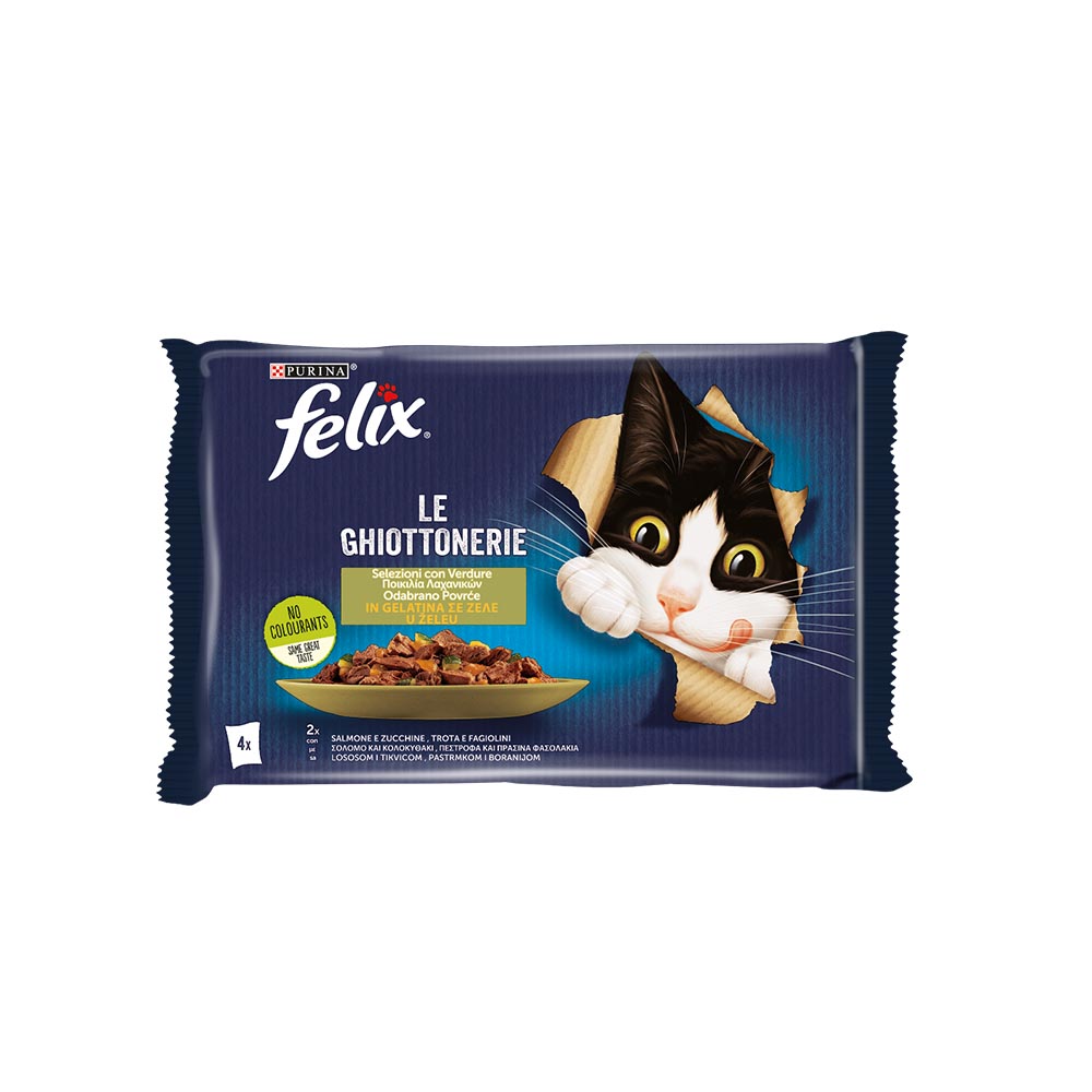 Alimento completo ed equilibrato per gatti adulti. Adatto anche per gatti sterilizzati.</p> FORMATO: 4×85 g=340 g Scadenza: 02/2026 Descrizione Prodotto FELIX Le GHIOTTONERIE sono ricette irresistibili per gatti, preparate con bocconcini in gelatina che offrono al felino un pasto delizioso e nutriente. Ricche di acidi grassi Omega 6, minerali bilanciati e vitamine D&E, sono la scelta perfetta per mantenere il tuo gatto pieno di vitalità e pronto a giocare. Senza aromi, conservanti o coloranti artificiali, soddisfano al 100% il fabbisogno giornaliero del tuo animale domestico. Disponibili in varie gustose ricette, FELIX Le GHIOTTONERIE sono la sana bontà che il tuo…
