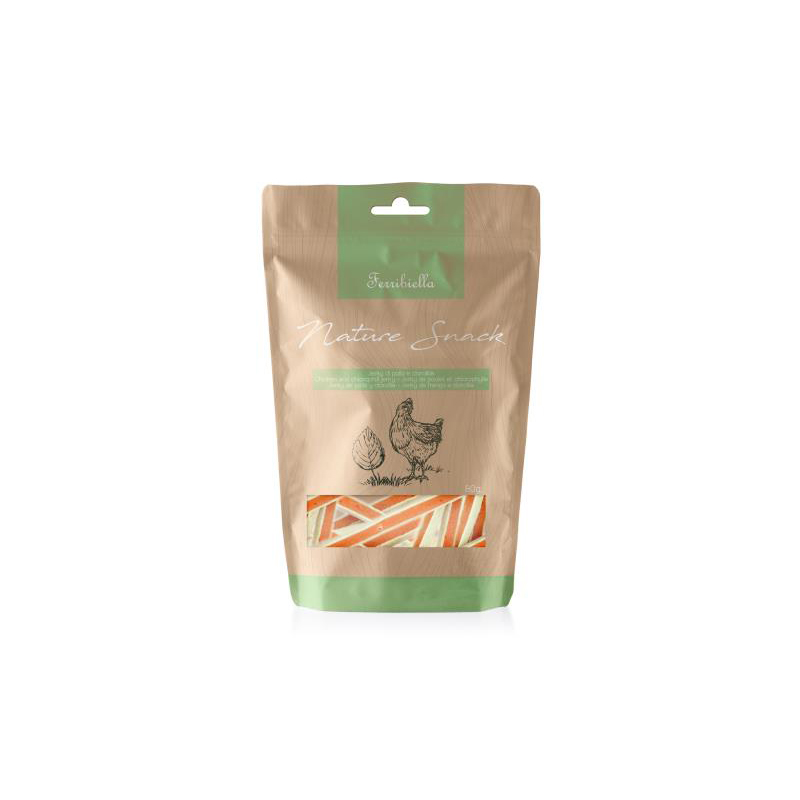 Ferribiella Nature Snack Cane Jerky Pollo e Clorofilla 80 gr è un alimento complementare per cani che non sostituisce la regolare alimentazione del vostro amico a quattro zampe. Accompagnare sempre con abbondante ciotola di acqua. Confezione da 80gr.