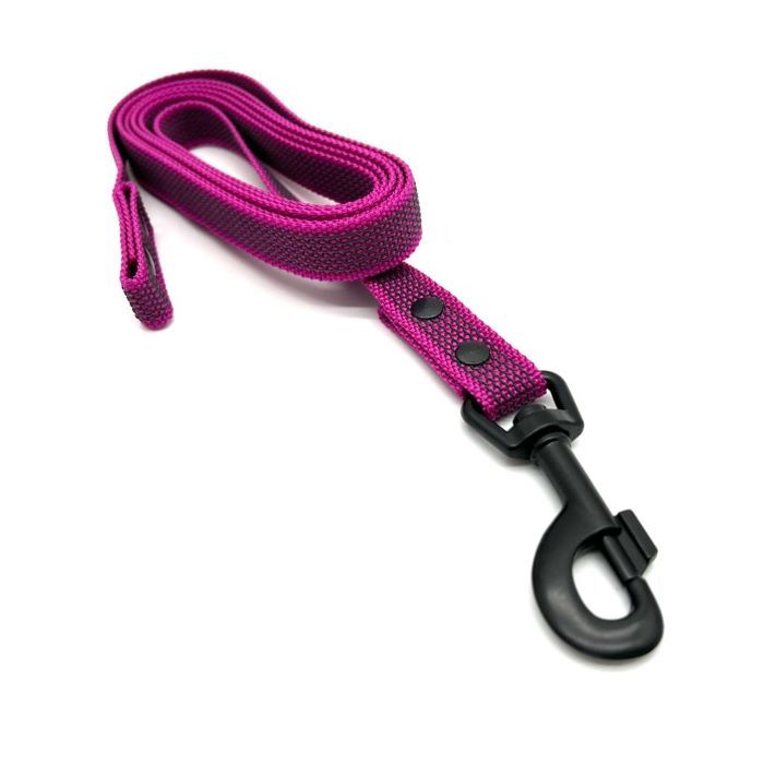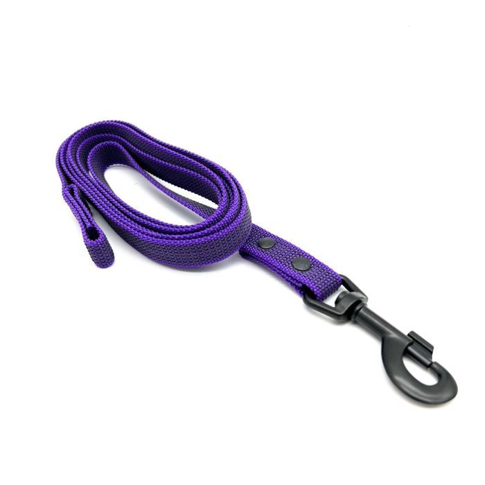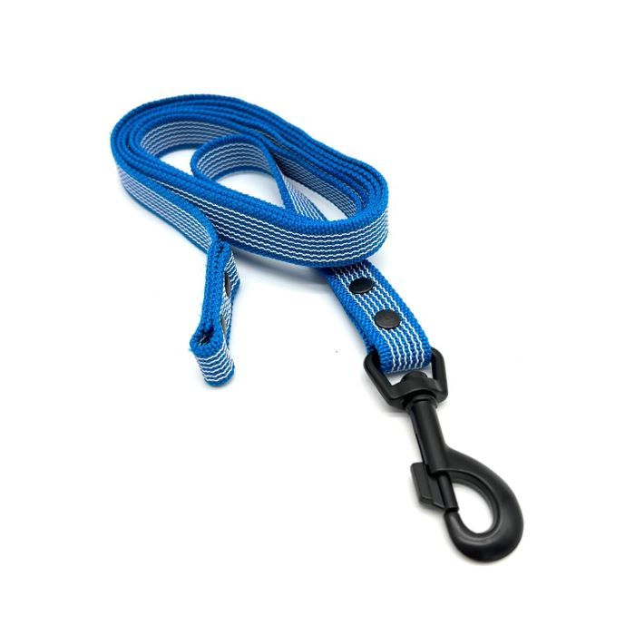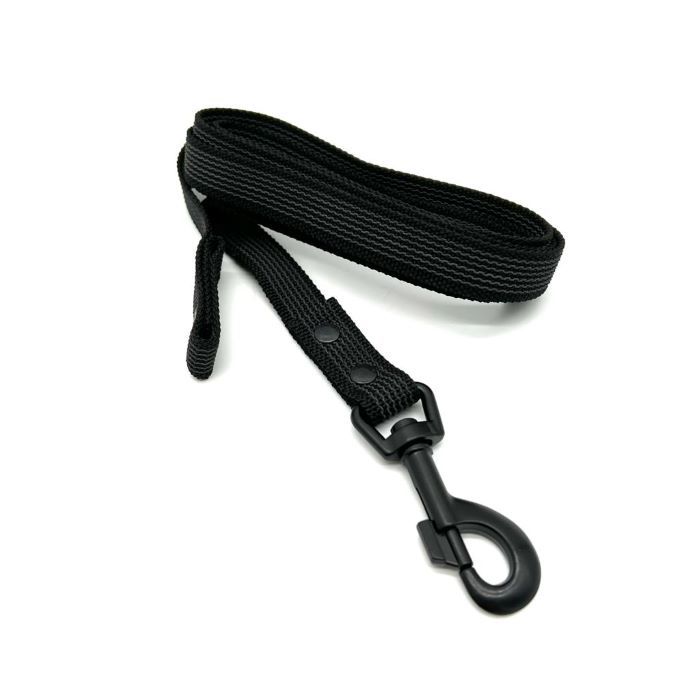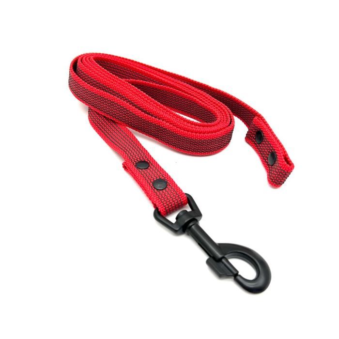 Guinzaglio in nylon antiscivolo, molto robusto e comodo nell’addestramento perchè non scivola neanche se bagnato. Questo guinzaglio è senza maniglia: questo perchè in addestramento capita di dover lasciare il guinzaglio a terra o attaccato al cane e la maniglia in queste situazioni risulterebbe pericolosa per il rischio di impigliarsi in sporgenze o nelle zampe del cane (molto pericoloso!!!). All’estremità del guinzaglio è posto un “fermo” in modo da avere un appiglio che non faccia sfuggire il guinzaglio dalle mani. Lunghezza 2 metri, spessore 2 cm
