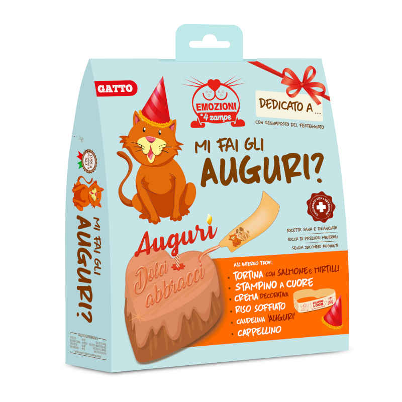 Kit Torta per Gatto Tortina Patè con Salmone e Mirtilli è l’ideale per festeggiare il compleanno del tuo gatto con un kit completo per gadget per festeggiare la ricorrenza! Questo è il prodotto che stai cercando da tempo per lo speciale evento del tuo gatto!