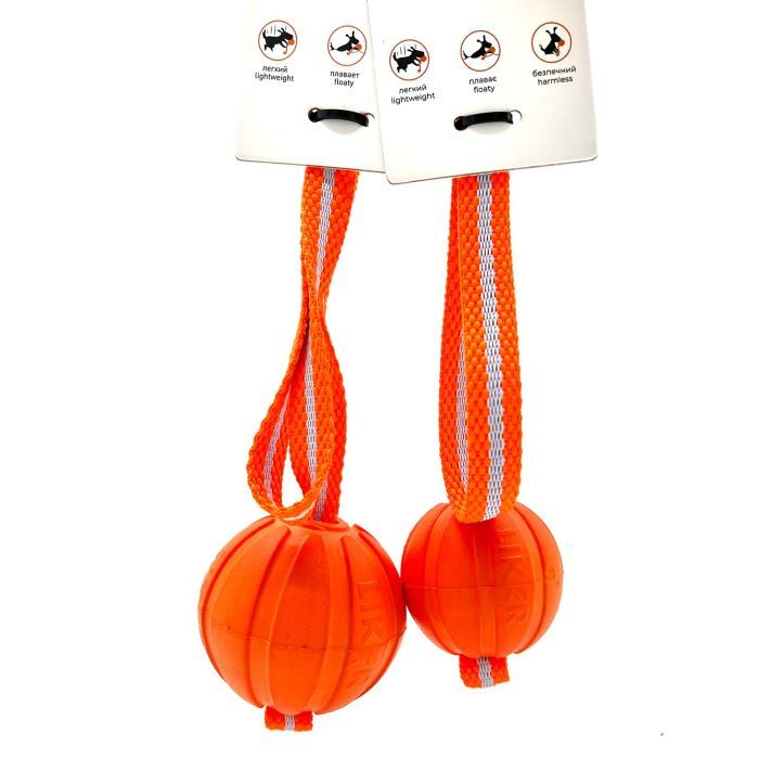 Le Palline Liker sono fatte da uno speciale polimero che le rende particolarmente leggere e piacevoli da mordere. Sono galleggianti e il loro colore le rende estremamente visibili in tutte le condizioni. Dotate di maniglia in cotone per facilitare il gioco e giocare al tira e molla. Diametro 5 cm, 7 cm, 9 cm