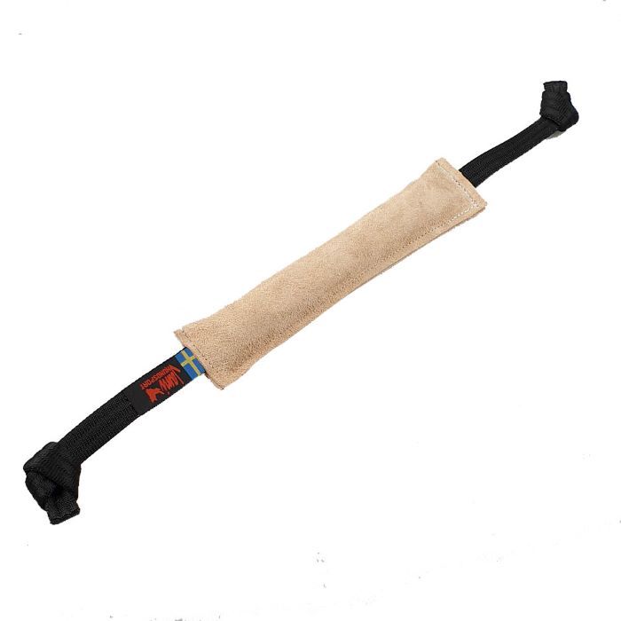 Manicotto in morbida pelle conciata al vegetale imbottito in lana di pecora con 2 maniglie. Dimensioni di 25 x 5 cm