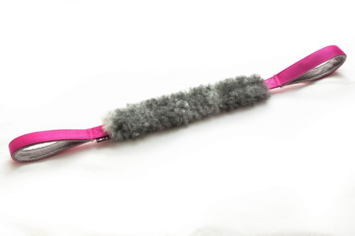Manicotto a 2 maniglie in vero pelo di pecora morbidissimo. Lunghezza totale 65 cm