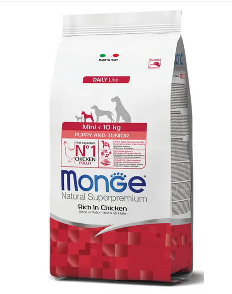 Composizione di Monge Mini Puppy & Junior Ricco di Pollo: