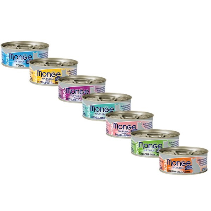 Monge Natural Scatolette Gatto Gusto Fantasia di Mare con Pollo 80 gr  è un alimento per Gatti Adulti la cui formula è completamente dedicata all’alimentazione naturale, favorendone il benessere del felino. La nuova linea di scatolette si inserisce ai livelli più alti tra le proposte di Monge Superpremium per soddisfare le esigenze nutrizionali del nostro fido!