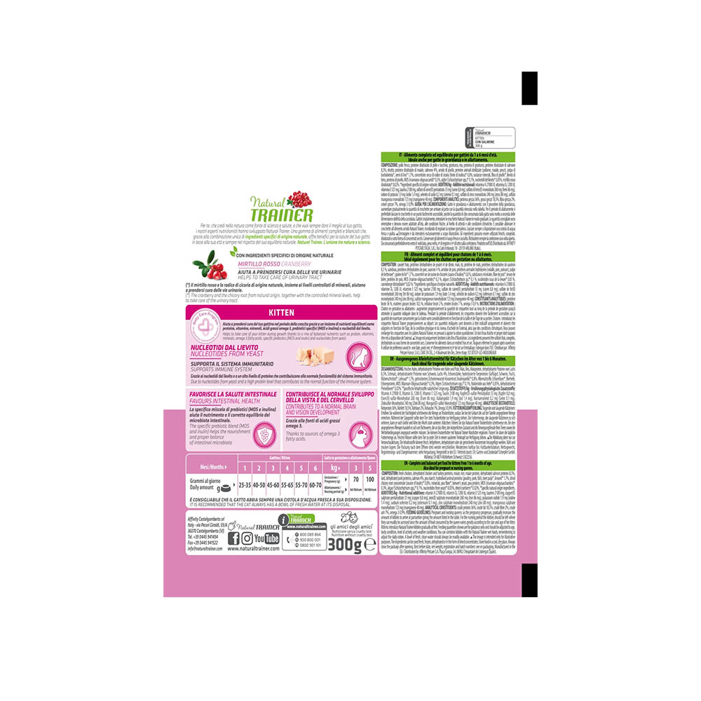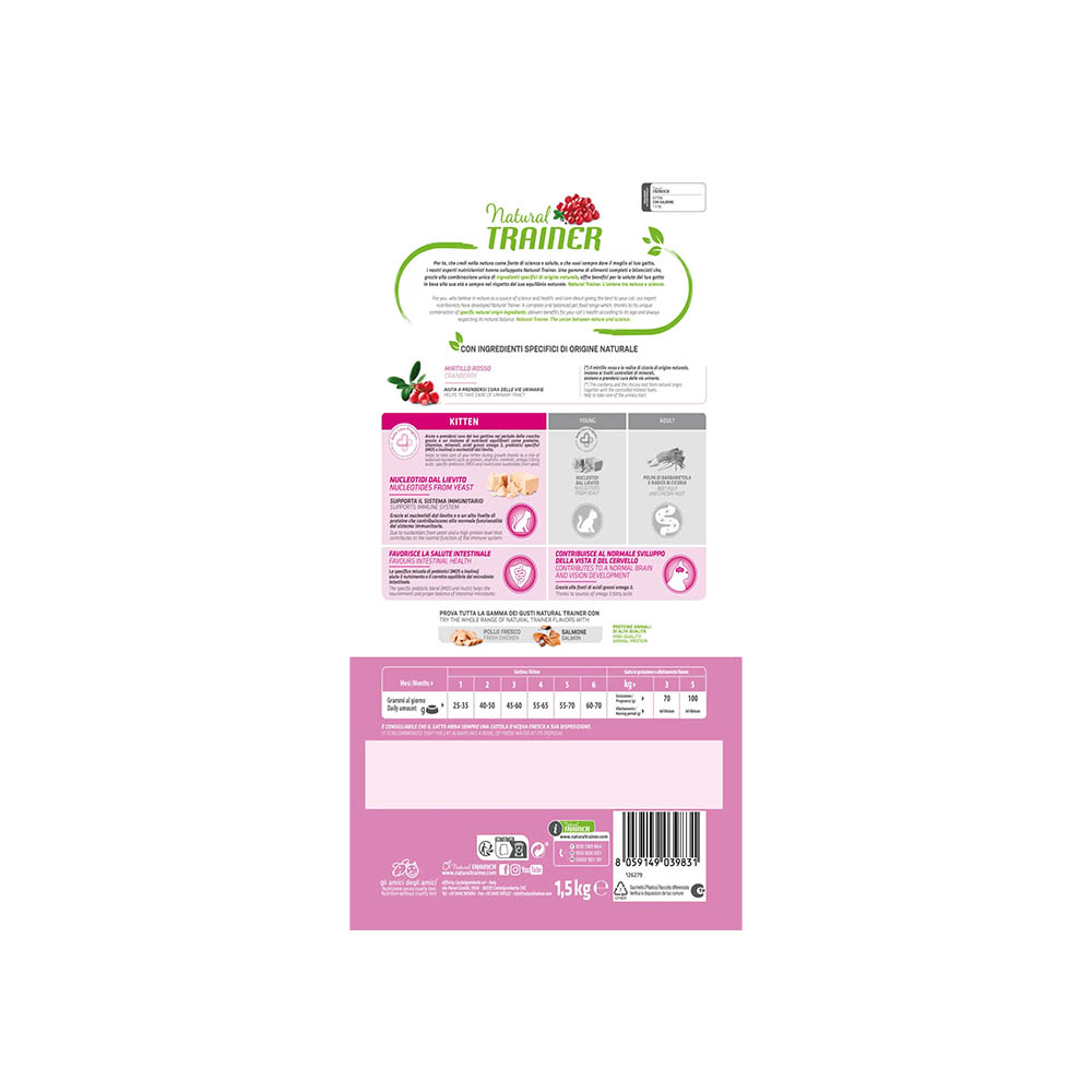 Scegli la qualità e la sicurezza di un’alimentazione naturale: con Natural Trainer KITTEN SALMONE, il tuo gattino riceve tutto ciò di cui ha bisogno per crescere forte, sano e felice.