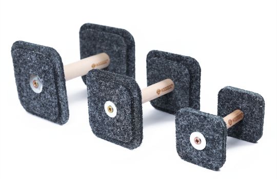 Riportello in Feltro extra light. Barra centrale in legno duro di faggio. Taglie: S: altezza laterali 7 cm, diametro barra centrale 1,5 cm, lunghezza barra centrale 10 cm, peso 50 h M: altezza laterali 10 cm, diametro barra centrale 2 cm, lunghezza barra centrale 12 cm, peso 100 g L: altezza laterali 12 cm, diametro barra centrale 2,5 cm, lunghezza barra centrale 14 cm, peso 160 g