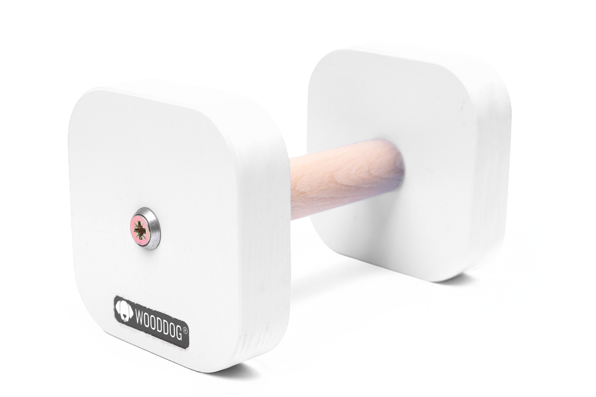 Lati: – realizzati in compensato impermeabile da 30 mm – fissati con viti lunghe e profondamente inserite, che aumentano la durata dei recuperi e impediscono ai lati di girare – disponibili in 9 colori (bianco, blu zaffiro, rosa, arancione, viola, giallo, blu, menta, nero) – c’è un logo WOODDOG posizionato su entrambi i lati (sul lato interno) Impugnatura: in legno di faggio duro IL RIPORTELLO E’ CONFORME AL REGOLAMENTO FCI Il vantaggio di avere il laterale spesso fornisce maggiore visibilità al riportello. TAGLIA M Altezza lati 10cm Diametro centrale 2,5cm Lunghezza centrale 12cm peso 380gr
