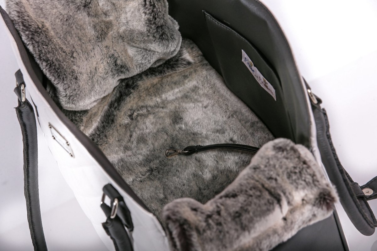 A passeggio con stile con la nuova meravigliosa borsa a spalla fashion ROCK BAG! Ideale per passeggiare in città, elegantissima, realizzata in pregiata eco-pelle liscia e trapuntata ed impreziosita dall’interno dal cuscino in morbidissima eco-pelliccia. All’interno il gancio di sicurezza, una comoda e capiente tasca per riporre i propri oggetti personali e un morbidissimo cuscino in eco-pelliccia con ali che si agganciano ai lati della borsa per permettere al cagnolino di appoggiare comodamente il musino e guardare fuori. Ideale per trasportare in sicurezza e comodità i nostri piccoli negli spostamenti quotidiani. Materiale: ECO-PELLE / ECO-PELLICCIA Misure (cm): 35×27/23×22 (Larghezza x…
