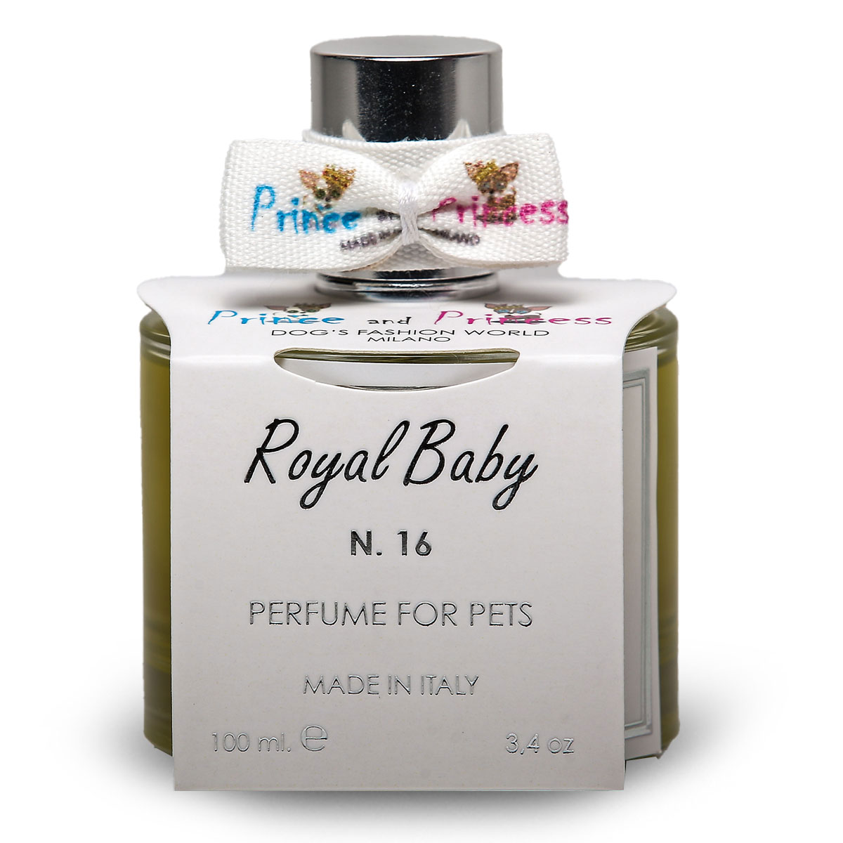 Royal Baby è la fresca fragranza regale dell’eterno cucciolo da coccolare. Un bacio fruttato nelle note di testa di arancia e litsea, si fonde con un cuore inebriante di talco, violetta, rosa e cumino per avvolgersi nelle note di fondo di un dolce abbraccio di muschio, vaniglia sandalo e cocco. L’essenza della tenerezza per veri cucciolini… Il lussuoso e raffinato collarino che avvolge il flacone invita a scoprire le esclusive profumazioni, le etichette in foglia d’argento rivelano i dettagli delle fragranze numerate da collezione. Eleganti Flaconi arrotondati coronati da un tappo argentato impreziosito da un fiocco in gros-grain Prince and Princess. 100…