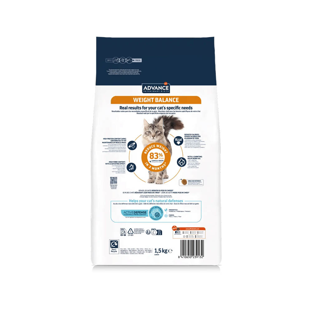 WEIGHT BALANCE GATTO ADVANCE 1,5Kg è un alimento dietetico completo per gatti adulti, formulato per ridurre il peso in eccesso e regolare il metabolismo lipidico in casi di iperlipidemia. Grazie al basso contenuto calorico e di grassi, e all’alto livello di proteine e fibre, aiuta a mantenere la massa muscolare e a favorire un effetto saziante. La presenza di L-carnitina contribuisce a bruciare i grassi, mentre gli acidi grassi essenziali supportano la salute generale. Clinicamente testato, ha dimostrato che l’83% dei gatti riduce il proprio peso in 3 mesi, migliorando anche la diversità del microbiota intestinale.